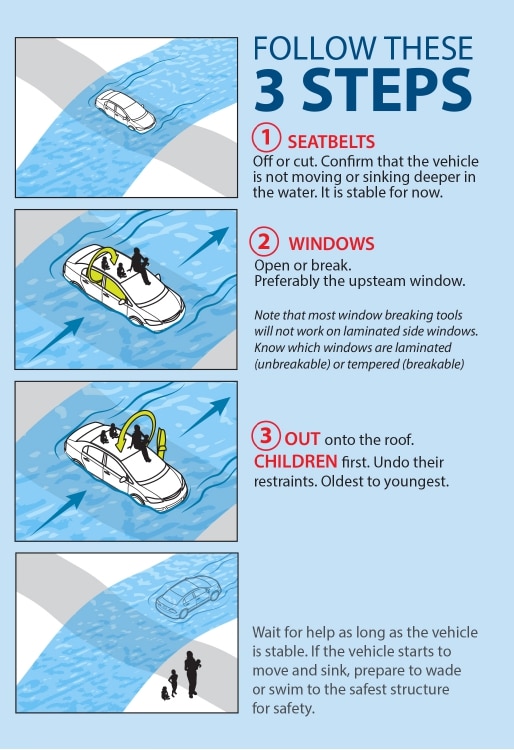 En Amérique du Nord, 400 individus meurent chaque année dans des véhicules immergés. Operation ALIVE (Automobile submersion : Lessons in Vehicle Escape) est une enquête visant à fournir des informations sur comment les gens peuvent faire face aux différents défis de sortie qui se produisent en fonction des véhicules (c’est-à-dire, voitures, fourgonnettes, camions, équipement lourd, etc.) en été et conditions hivernales.